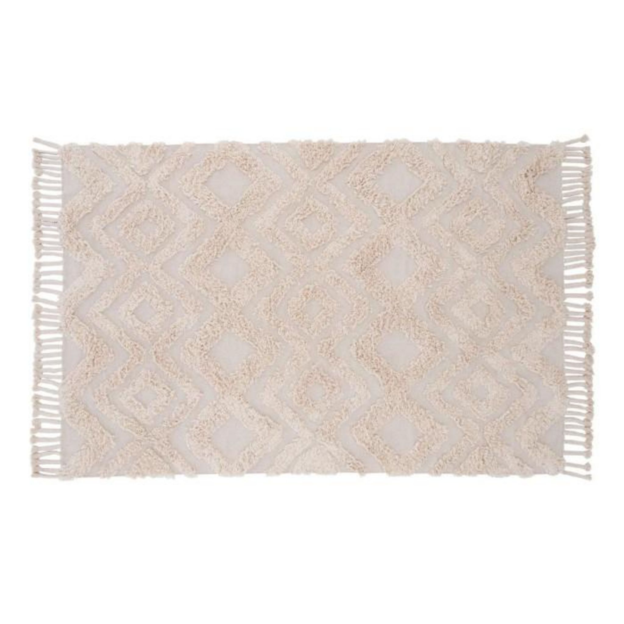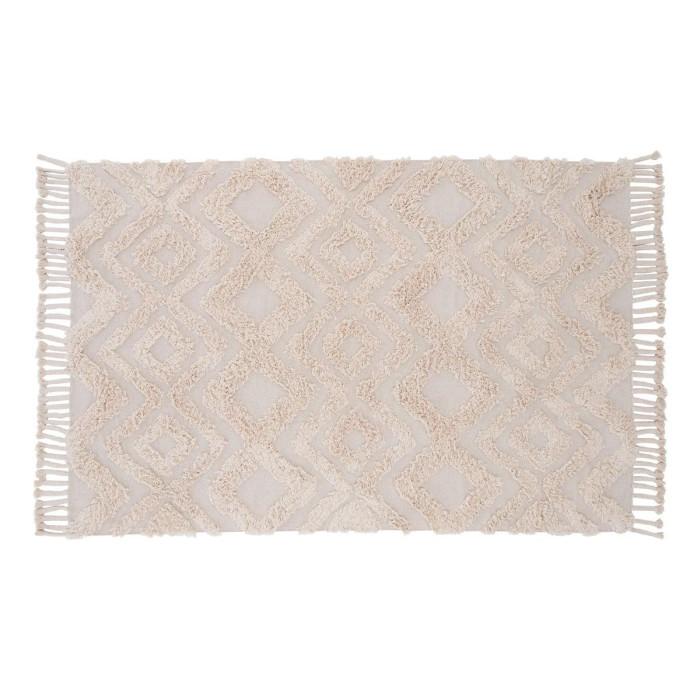 Informations Techniques : Dimensions : L. 300 x l. 200 x H. 3 cm Matière : Coton Spécificités : Tendance & Déco Tapis tufté Avec franges Forme rectangulaire Poids : 7,85 kg Couleur : Beige