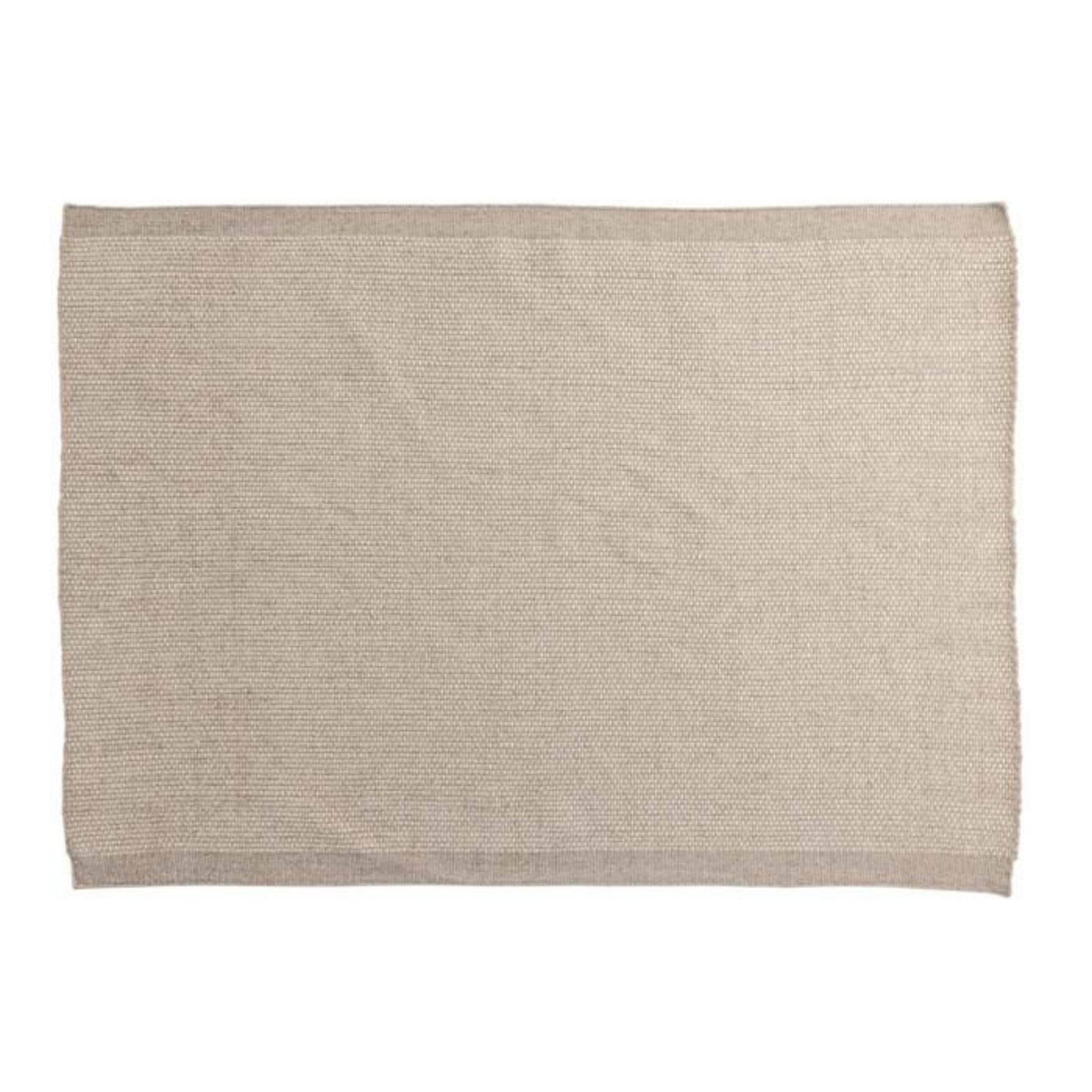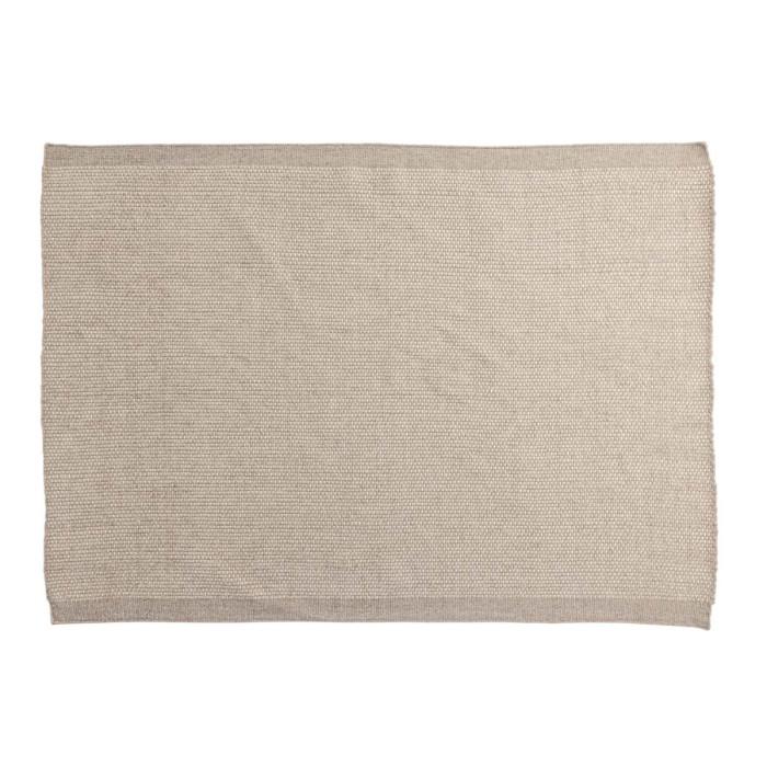 Informations Techniques : Dimensions : L. 230 x l. 160 x H. 1 cm Matières : Laine & Coton (dessous) Spécificités : Doux & Tendance Tapis déco Forme rectangulaire Poids : 7,4 kg Couleur : Beige