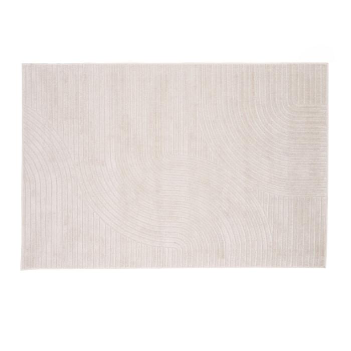Informations Techniques : Dimensions : L. 230 x l. 160 x H. 1,6 cm Matière : Polypropylène Spécificités : Pratique & Tendance Tapis déco Design courbes Forme rectangulaire Poids : 4,78 kg Couleur : Naturel