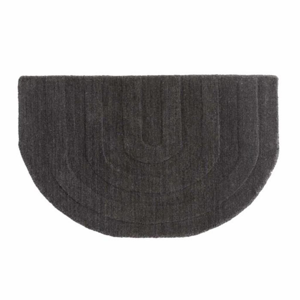 Informations Techniques : Dimensions : L. 80 x l. 50 x H. 1,3 cm Matière : Laine Spécificités : Pratique & Tendance Tapis déco En demi rond Motifs arcs Poids : 1,5 kg Couleur : Gris