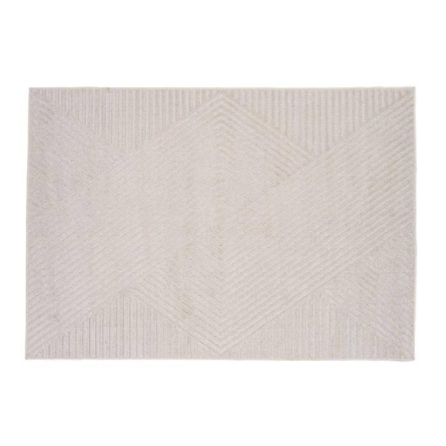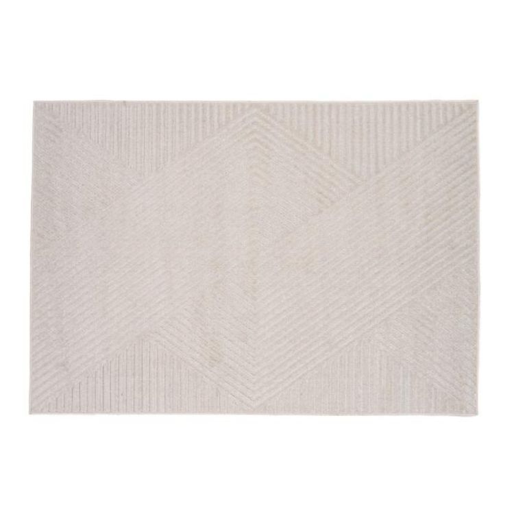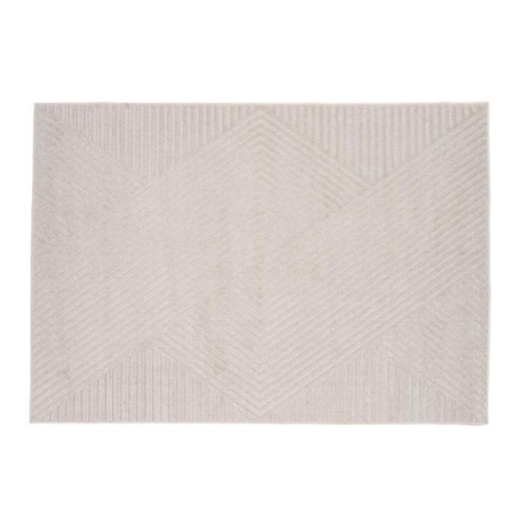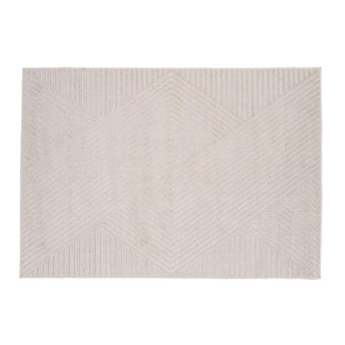 Informations Techniques : Dimensions : L. 230 x l. 160 x H. 1,6 cm Matière : Polypropylène Spécificités : Pratique & Tendance Tapis déco Design géométrique Motif lignes Forme rectangulaire Poids : 4,6 kg Couleur : Naturel