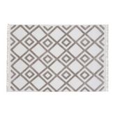 Informations Techniques : Dimensions : L. 230 x l. 160 x H. 1 cm Matières : Dessus : Polyester Dessous : Fibre Spécificités : Pratique & Tendance Tapis design Avec franges décorative Motifs géométriques en relief Forme rectangulaire Poids : 7,9 kg Couleur : Marron