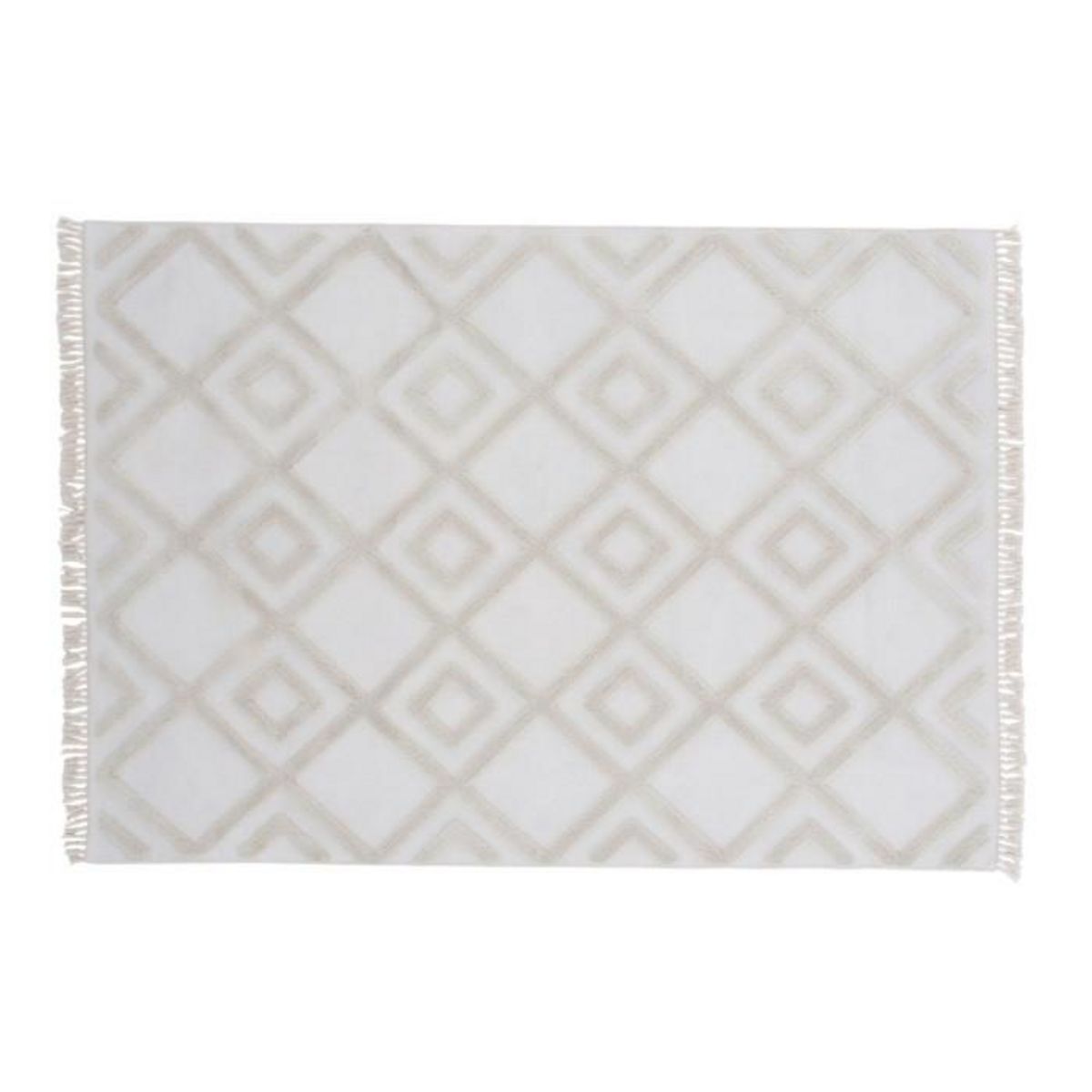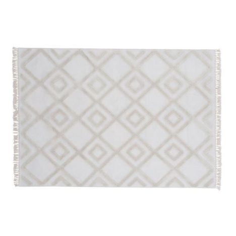 Informations Techniques : Dimensions : L. 230 x l. 160 x H. 1 cm Matières : Dessus : Polyester Dessous : Fibre Spécificités : Pratique & Tendance Tapis design Avec franges décorative Motifs géométriques en relief Forme rectangulaire Poids : 7,9 kg Couleur : Naturel