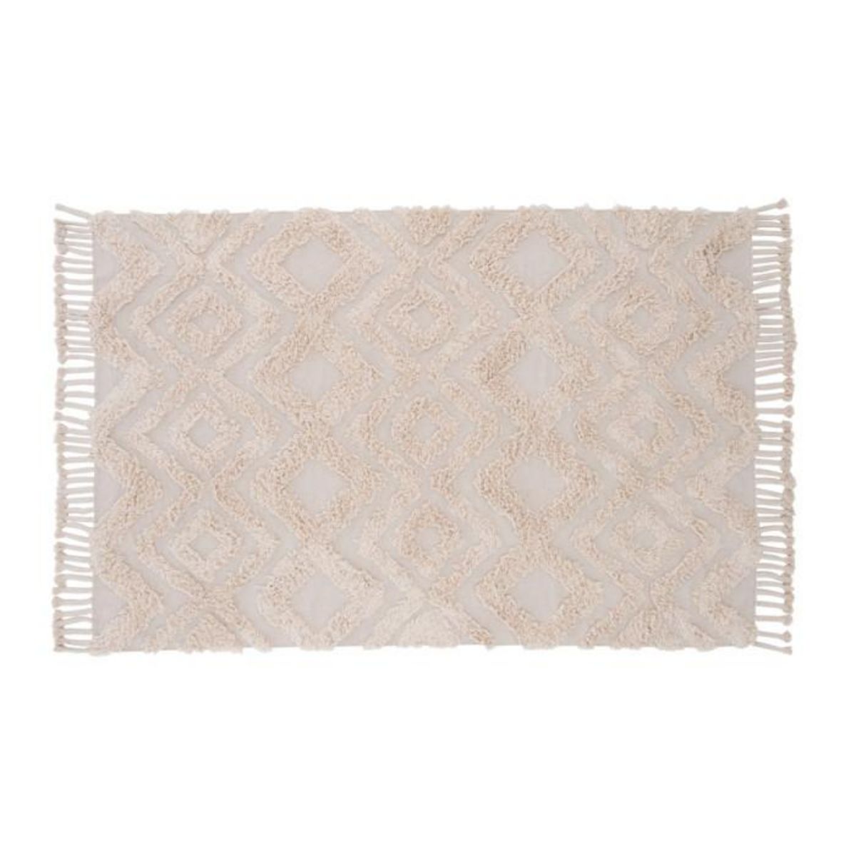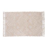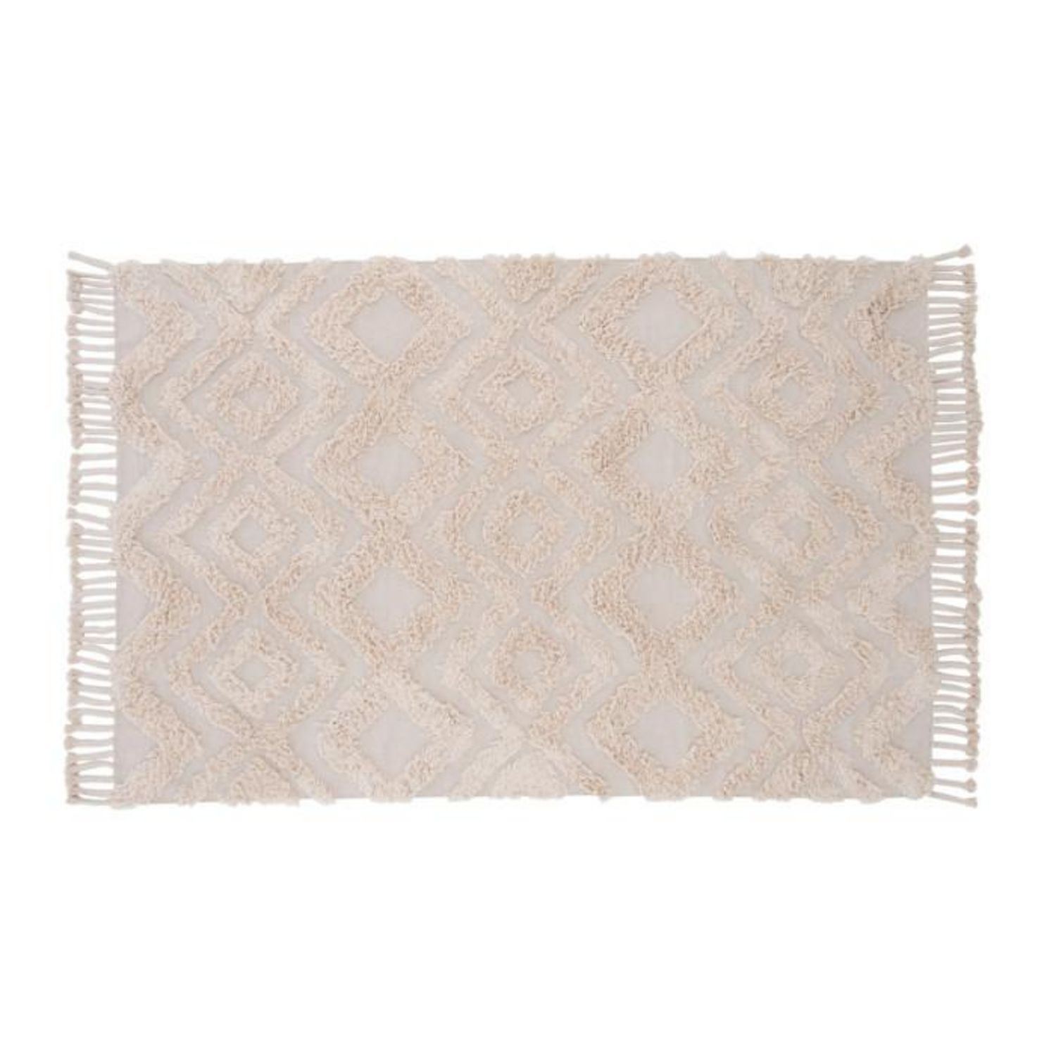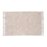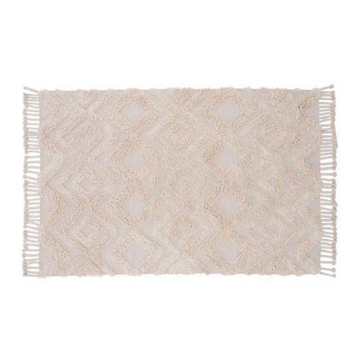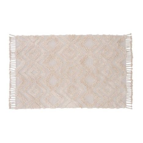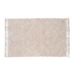 Informations Techniques : Dimensions : L. 230 x l. 160 x H. 3 cm Matière : Coton Spécificités : Pratique & Tendance Tapis design Avec franges décoratives Motifs tuftés Forme rectangulaire Poids : 5,52 kg Couleur : Beige