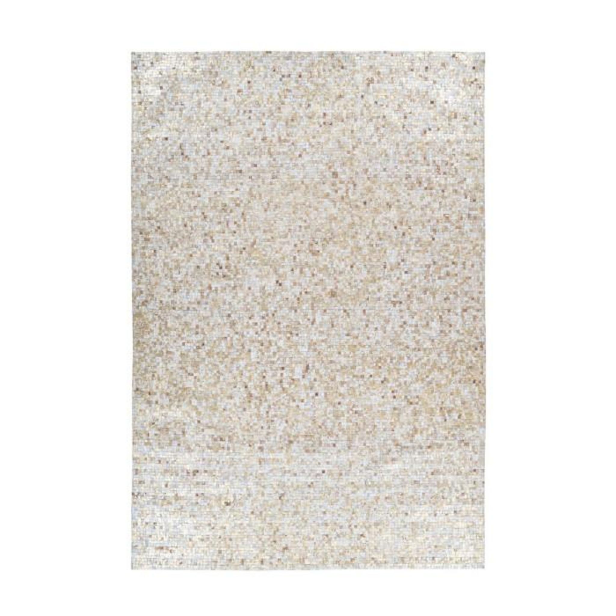 Informations Techniques : Dimensions : 4 Tailles Disponibles Hauteur : 5 mm (environ) Matières : Revêtement : 100% Cuir Dos : 100% Laine Spécificités : Résistant & Robuste Tapis déco Forme Rectangulaire Effet Métallique Entretien & Fabrication : Type de Fabrication : Fait Main Utilisable dans le