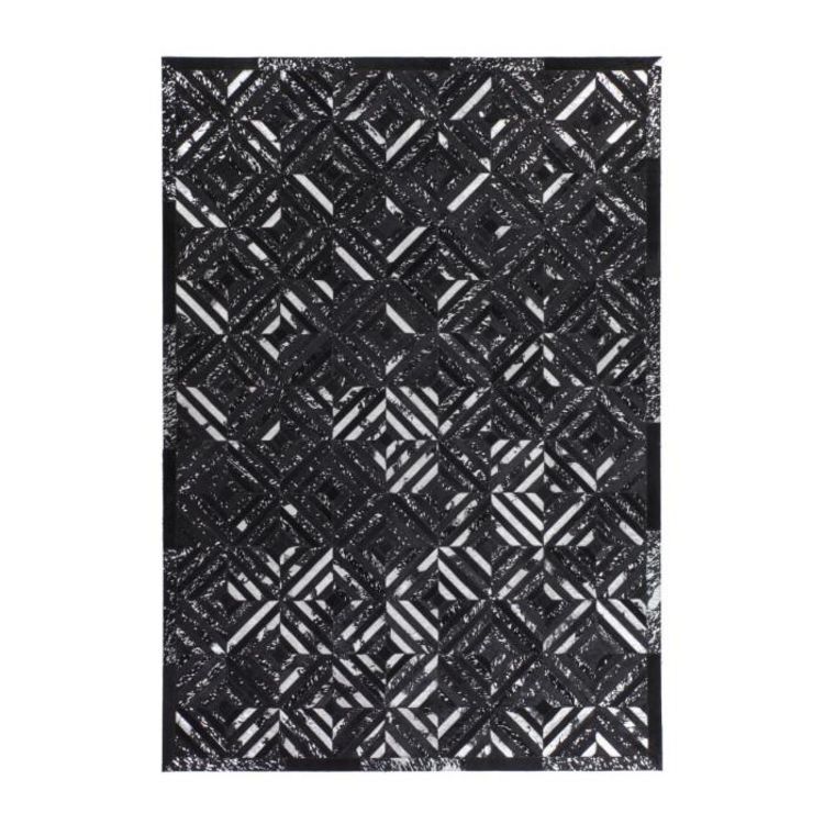 Tapis en Cuir Fait Main Spark Noir & Argent