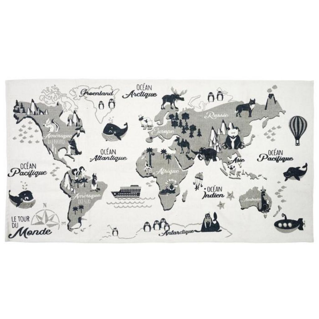 Tapis Enfant Mappemonde 70x140cm Blanc & Gris