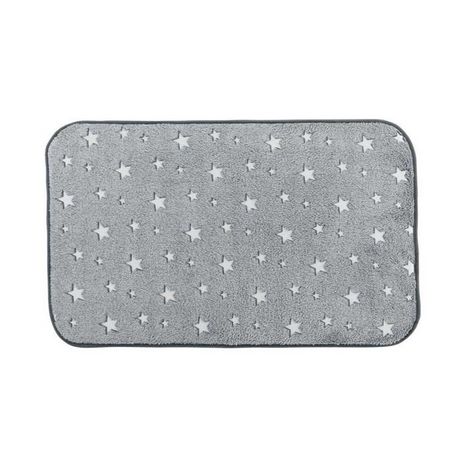 Informations Techniques : Dimensions : L. 80 x l. 50 cm Produit Packagé : L. 50 x l. 2 x H. 86 cm Matière : 100% Polyester Spécificités : Pratique & Utile Tapis Enfant Forme Rectangulaire Motif Étoiles Phosphorescent Fluo Texture Flanelle Finition Biais Poids : 0,34 kg Couleur : Gris