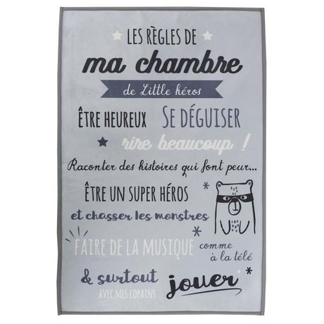 Tapis Enfant Règles de la Chambre 60x90cm Gris