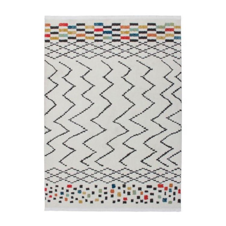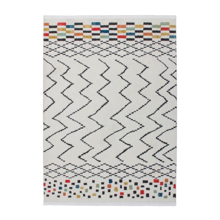 Tapis Ethnique à Franges Agadir Noir & Multicolore