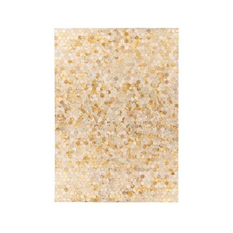 Tapis Fait Main en Cuir à Poils Ras Ravi Or