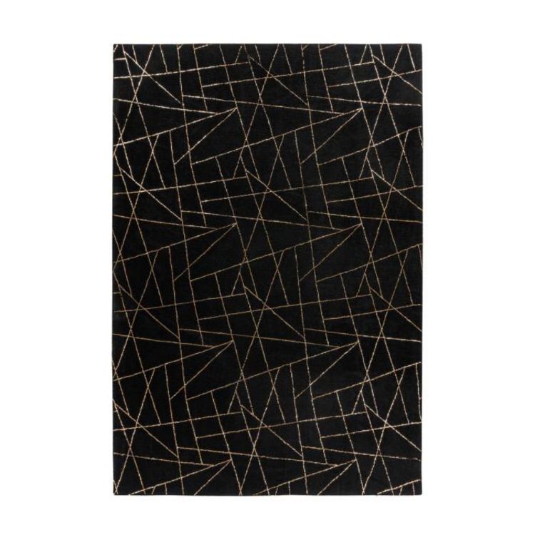 Tapis Géométrique à Poils Longs Bijou Noir & Or