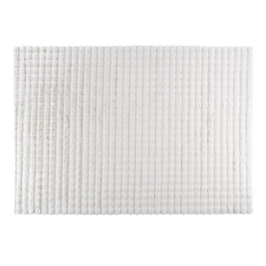 Informations Techniques : Dimensions : L. 290 x l. 200 x H. 2,5 cm Matière : Polyester Spécificités : Déco & Doux Tapis imitation fourrure Design effet matelassé Forme rectangulaire Poids : 5,5 kg Couleur : Blanc
