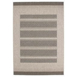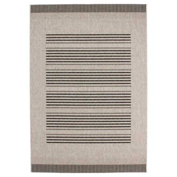 Informations Techniques : Dimensions : 4 Tailles Disponibles Hauteur : 5 mm (environ) Matières : Revêtement : 100% Polypropylène Dos : 100% Jute Spécificités : Résistant & Robuste Tapis déco Forme Rectangulaire Imprimé Rayé Faible Peluche Attelage Latéral fixe Entretien & Fabrication : Fabriqué