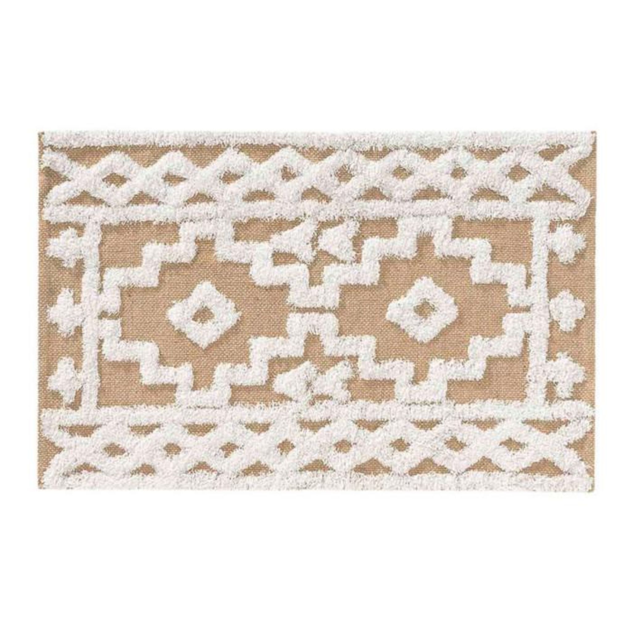 Informations Techniques : Dimensions : L. 90 x l. 60 cm Matières : 57% Jute, 24% Coton, 10% Polyester & 9% Fibres Spécificités : Tendance & Utile Tapis déco Multi-usage Motif imprimé Forme rectangulaire Poids : 0,76 kg Couleur : Naturel