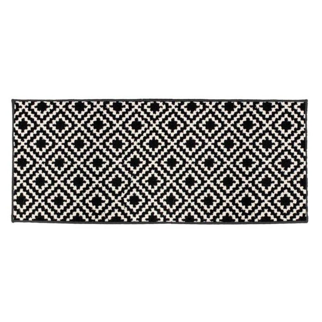 Informations Techniques : Dimensions : L. 120 x l. 50 cm Matières : Dessus : 100% Polypropylène Dessous : 100% Latex Spécificités : Déco & Pratique Tapis multi-usage bouclette Motif losange Antidérapant et anti-traces Forme rectangulaire Entretien : Lavage à 30° Pas de séchage en machine Pas de rep