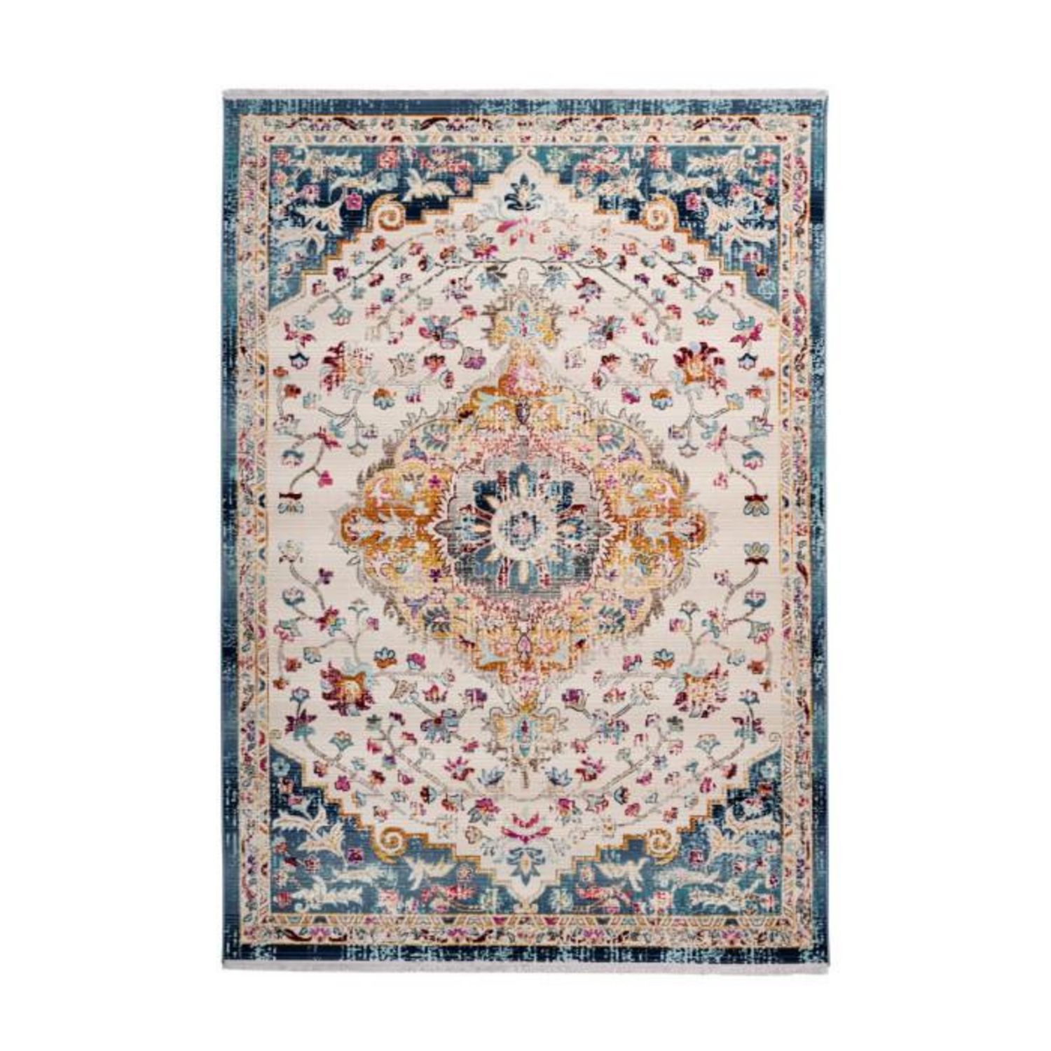 Tapis Oriental Effet Usé Anouk Blanc & Bleu