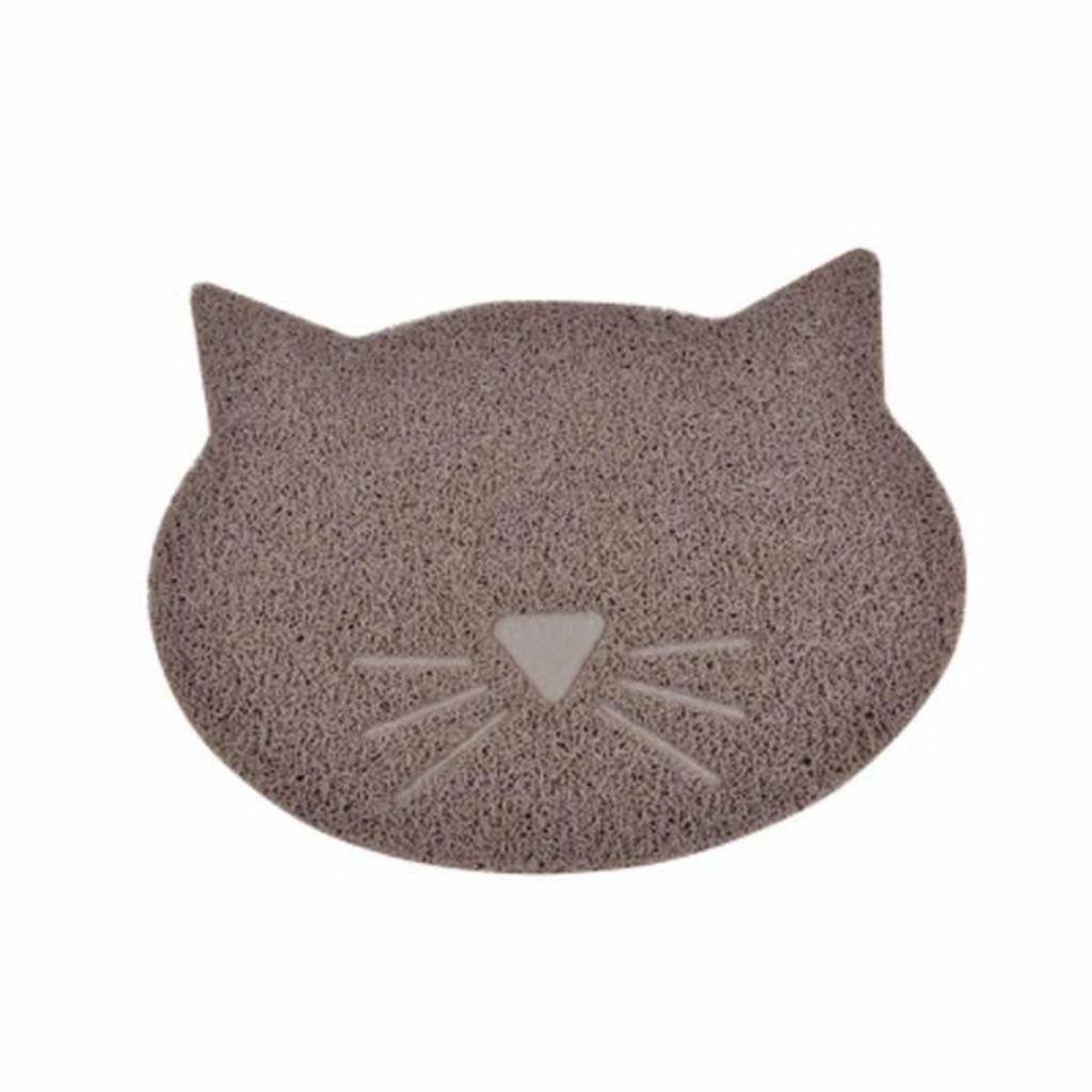Informations Techniques : Dimensions : L. 43 x l. 37 cm Matière : PVC Spécificités : Pratique & Efficace Tapis Repas Pour Chats Forme Tête de Chat Couleur : Taupe