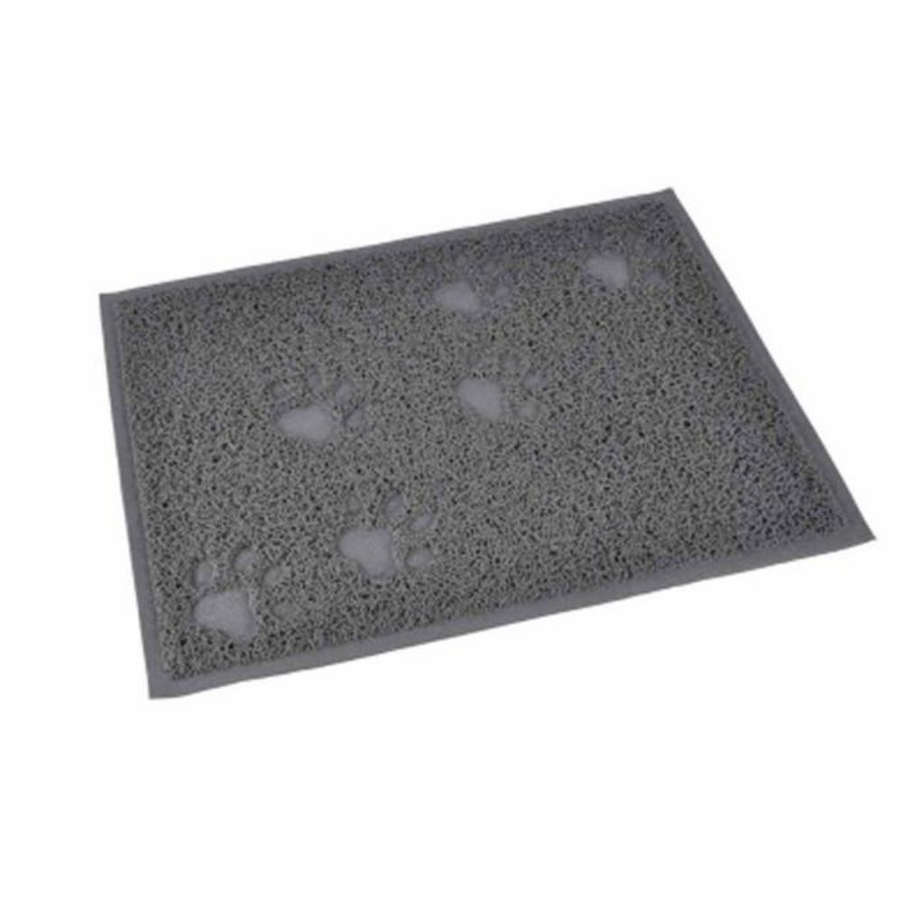 Informations Techniques : Dimensions : L. 40 x l. 30 cm Matière : PVC Spécificités : Pratique & Efficace Tapis Repas Pour Chiens & Chats Motifs Pattes Couleur : Gris