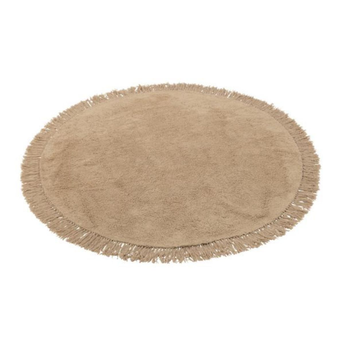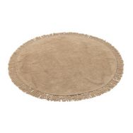 Informations Techniques : Dimensions : D. 150 x H. 2 cm Matière : 100% Coton Spécificités : Pratique & Tendance Tapis déco uni Avec franges Forme ronde Poids : 3 kg Couleur : Beige Foncé