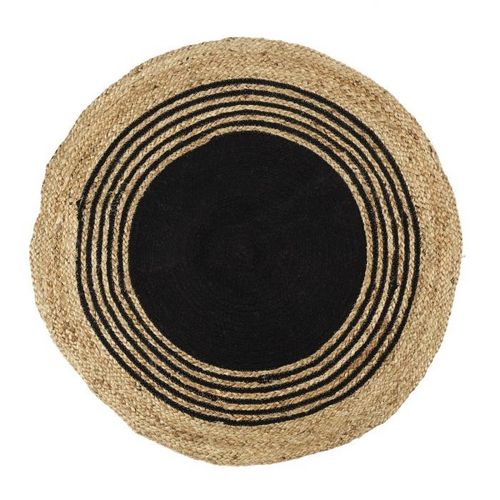 Informations Techniques : Dimensions : D. 90 x H. 0,5 cm Matières : Jute & Coton Spécificités : Pratique & Utile Tapis Déco Forme Ronde Poids : 3,15 kg Couleur : Noir & Naturel