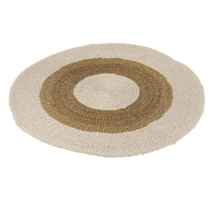Tapis Rond Déco Zostère 150cm Blanc & Naturel