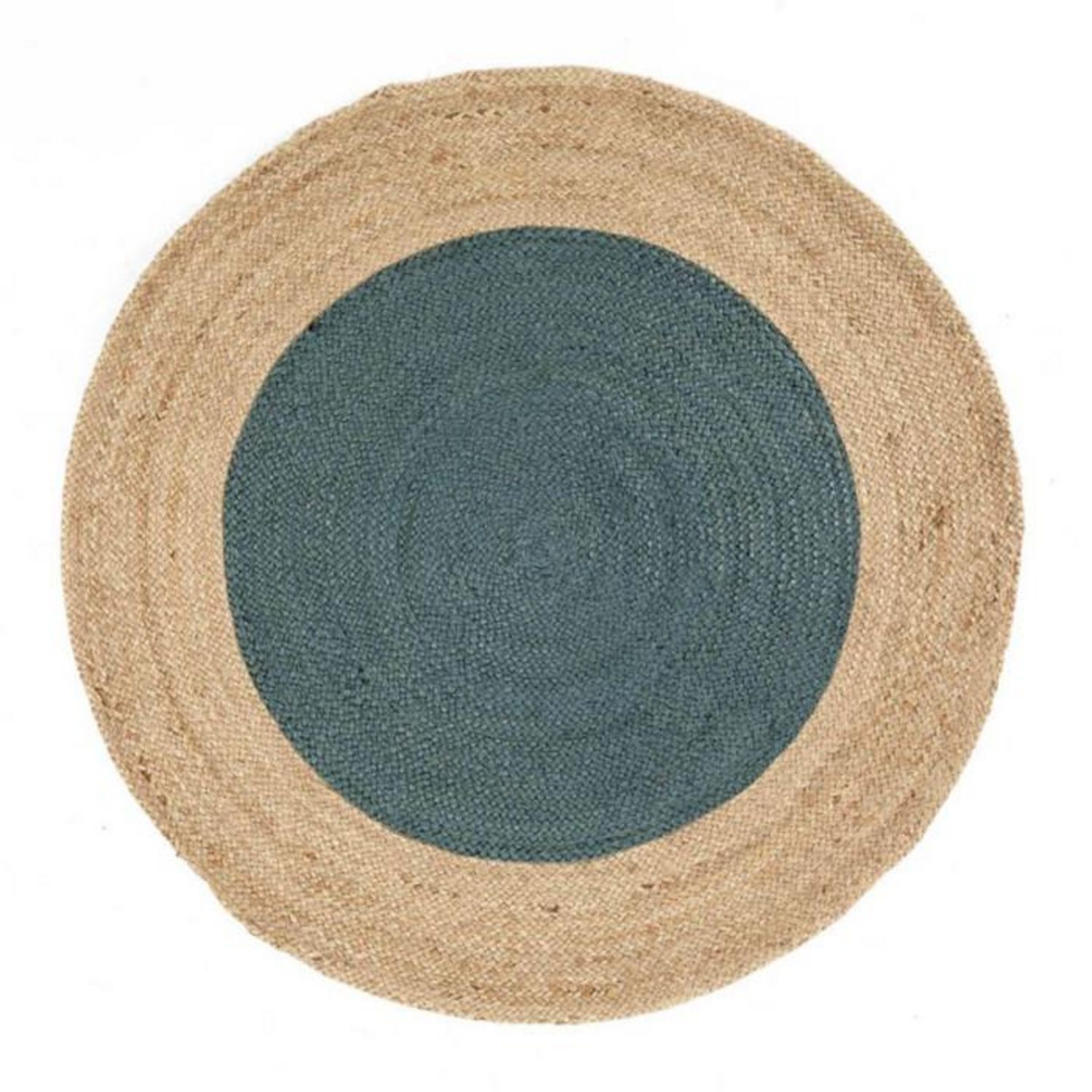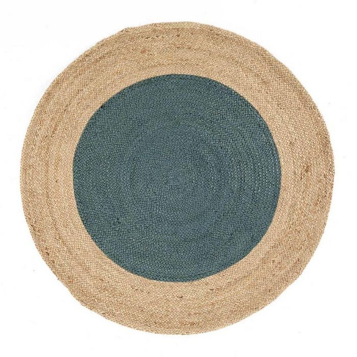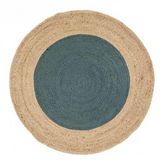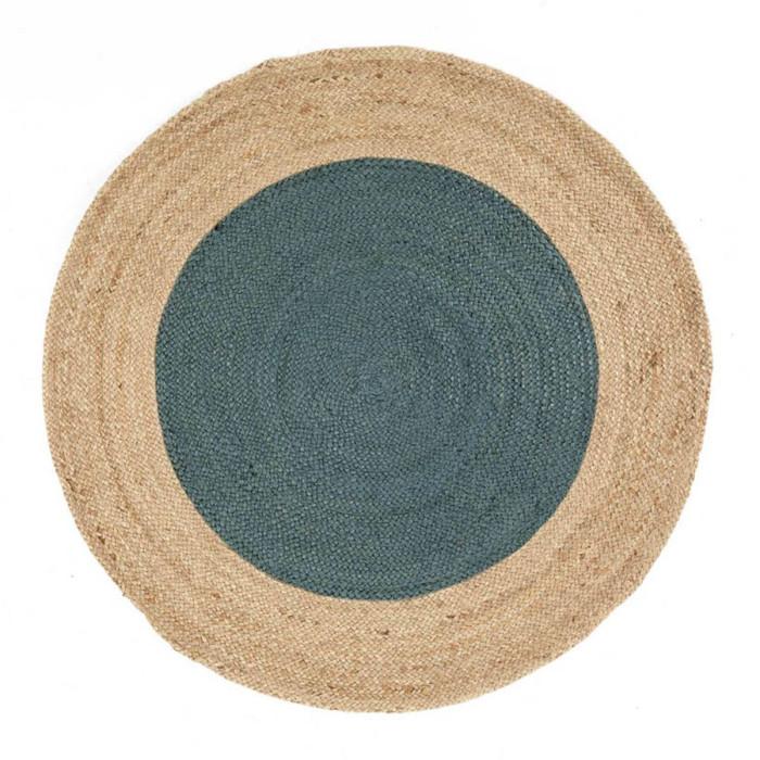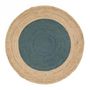 Informations Techniques : Dimensions : D. 120 cm Matière : Jute Spécificités : Tendance & Utile Tapis déco Bicolore Forme ronde Couleur : Bleu