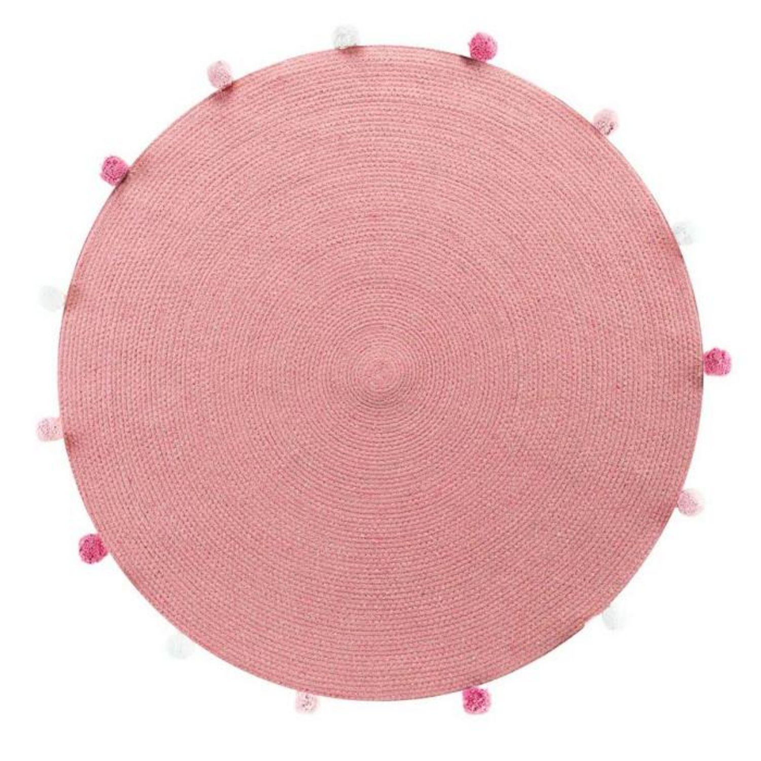 Tapis Rond Enfant Pompomparty 90cm Rose Dragée