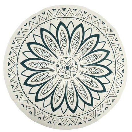 Informations Techniques : Dimensions : D. 90 x H. 1 cm Matière : Coton Spécificités : Pratique & Utile Tapis Déco Forme Ronde Motif Mandala Poids : 1 kg Couleur : Blanc