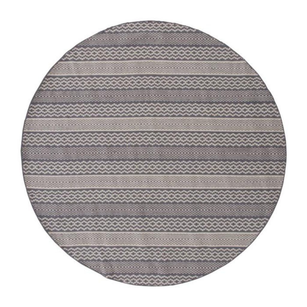 Informations Techniques : Dimensions : D. 200 x H. 0,5 cm Matières : Laine & Coton Spécificités : Pratique & Tendance Tapis déco Tissé à la main Motif décoratif Forme rond Poids : 4,72 kg Couleur : Gris
