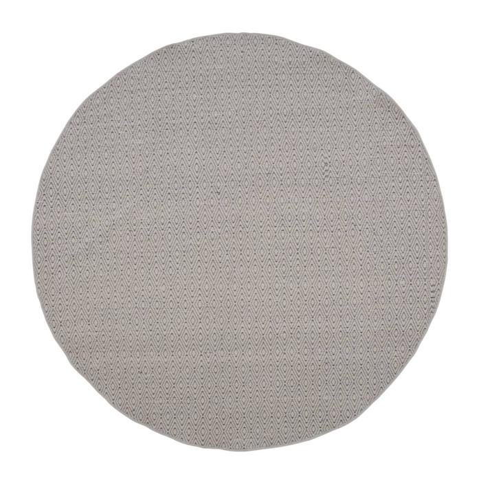 Informations Techniques : Dimensions : D. 200 x H. 0,5 cm Matières : Laine & Polyester Spécificités : Pratique & Tendance Tapis déco Tissé à la main Motifs losanges Style bohème Forme ronde Poids : 5,12 kg Couleur : Beige