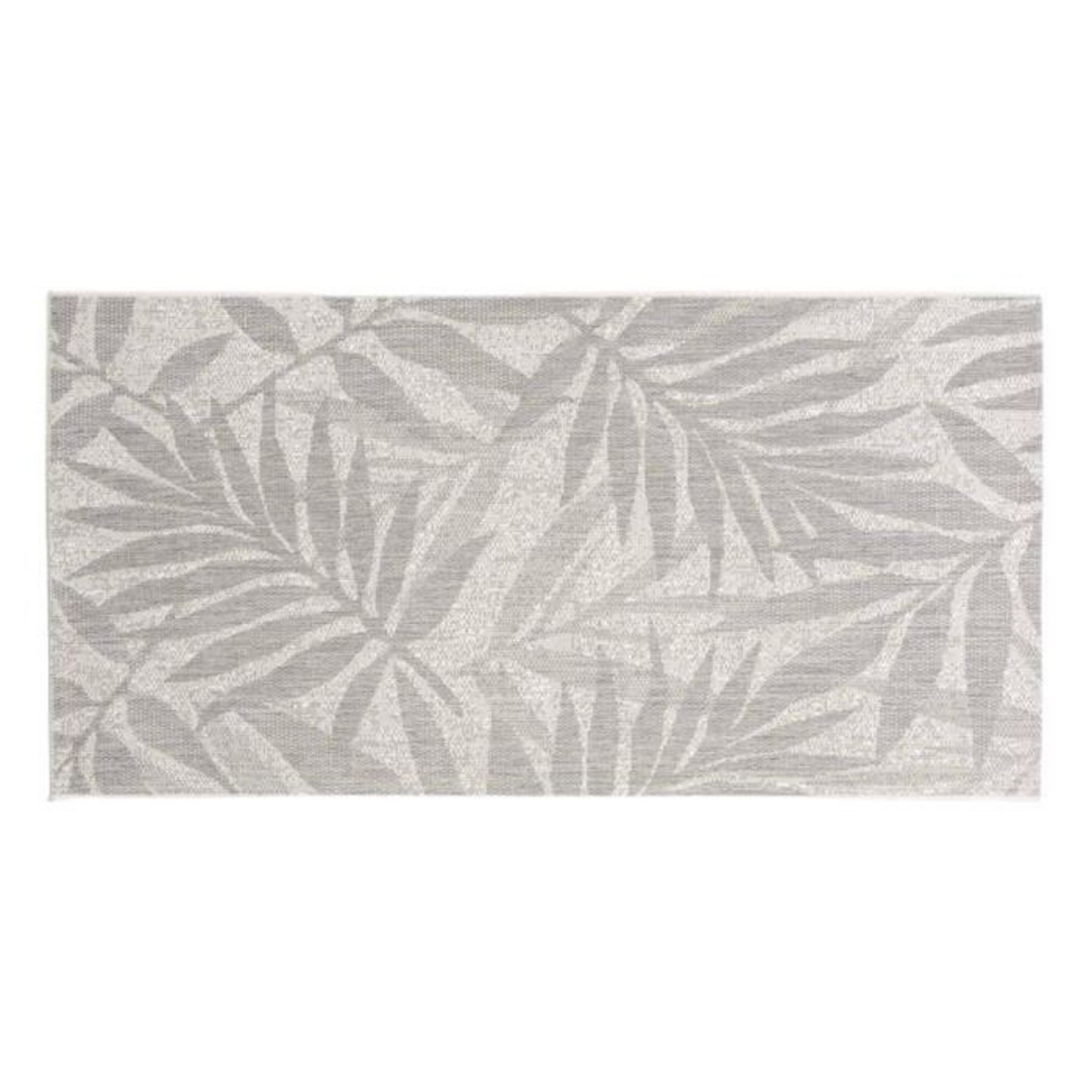 Informations Techniques : Dimensions : L. 150 x l. 80 cm Matière : 100% Polypropylène Spécificités : Tendance & Moderne Tapis déco tissé Imprimé feuille Forme rectangulaire Entretien : Pas de lavage Pas de séchage en machine Pas de repassage Certification : Label Okeo-Tex standard 100 Poids : 1,08 k