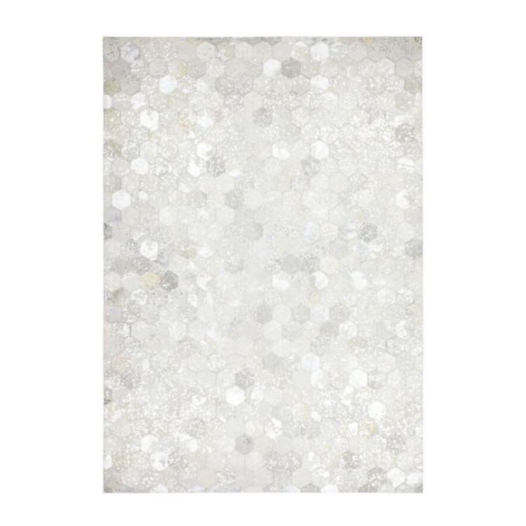 Informations Techniques : Dimensions : 3 Tailles Disponibles Hauteur : 8 mm (environ) Matières : Revêtement : 100% Cuir Dos : 100% Coton Spécificités : Résistant & Robuste Tapis déco Forme Rectangulaire Effet Métallique Faible Peluche Entretien & Fabrication : Type de Fabrication : Fait Main Id