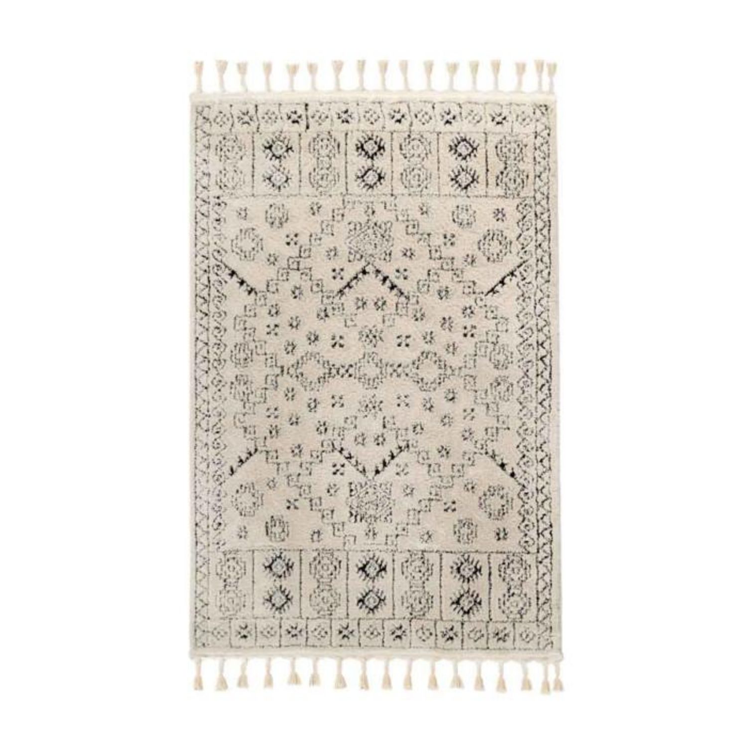 Tapis Tissé Ethnique avec Franges Lovis Blanc