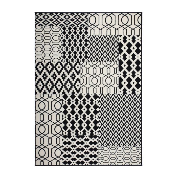 Tapis Tissé Géométrique à Poils Courts Lina Noir