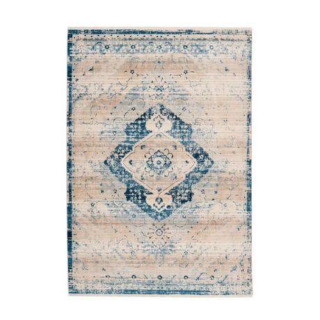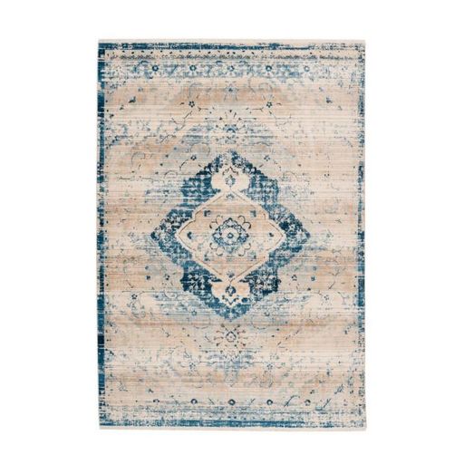 Tapis Vintage à Franges Baroque V Crème & Bleu