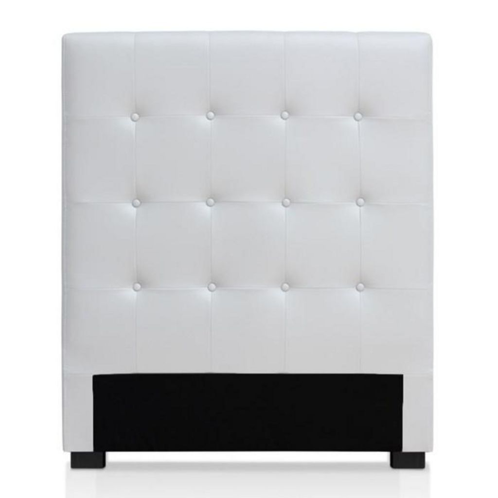 Informations Techniques : Dimensions : L. 90 x l. 8 x H. 120 cm Matière : Polyuréthane Spécificités : Élégante & Design Tête de lit à poser Pour sommier standard 90cm Design capitonné À monter soi-même Nombre de colis : 1 Poids : 7,5 kg Couleur : Blanc