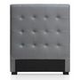 Informations Techniques : Dimensions : L. 90 x l. 8 x H. 120 cm Matière : Polyuréthane Spécificités : Élégante & Design Tête de lit à poser Pour sommier standard 90cm Design capitonné À monter soi-même Nombre de colis : 1 Poids : 7,5 kg Couleur : Gris