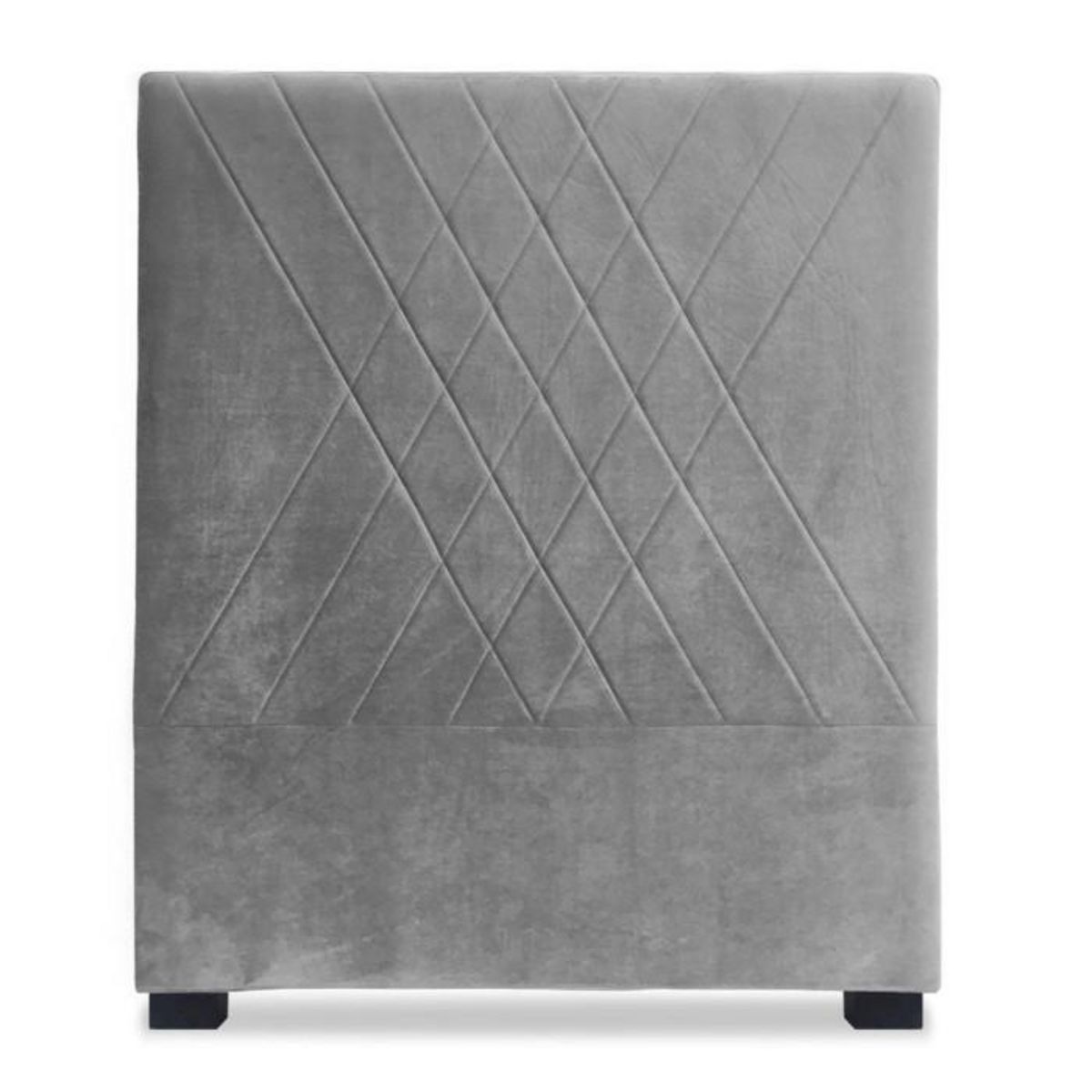 Informations Techniques : Dimensions : L. 90 x l. 8 x H. 120 cm Matière : Velours & Bois Spécificités : Design moderne & élégant Tracé effet quadrillage Convient pour un sommier standard 90cm Nombre de colis : 1 Couleur : Gris
