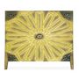 Informations Techniques : Dimensions : L. 160 x l. 6 x H. 140 cm Matières : Bois massif & MDF Spécificités : Pratique & Tendance Tête de lit déco Bois sculpté Design soleil Nombre de colis : 1 Poids : 31 kg Couleur : Or