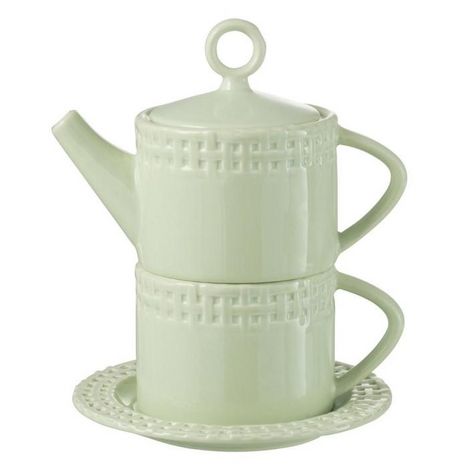 Informations Techniques : Dimensions : L. 18 x l. 16,5 x H. 22 cm Matière : Céramique Spécificités : Pratique & Utile Théière Design 1 Tasse inclus Avec Coupelle Poids : 0,82 kg Couleur : Vert