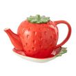 Informations Techniques : Dimensions : L. 21,5 x l. 14 x H. 15,5 cm Matière : 100% Dolomite Spécificités : Originale & Utile Théière avec plateau En forme de fraise Poids : 0,69 kg Couleur : Rouge