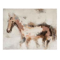 Informations Techniques : Dimensions : L. 119,5 x l. 3,5 x H. 90 cm Matières : Canevas & Bois Spécificités : Tendance & Moderne Toile Déco Forme Rectangulaire Motif Cheval Abstrait Poids : 2,735 kg Couleur : Blanc & Marron