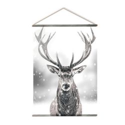 Toile Murale à Suspendre Cerf 90x130cm Noir & Blanc