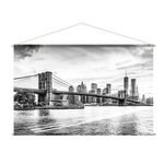 Toile Murale à Suspendre Ville 150x90cm Noir & Blanc