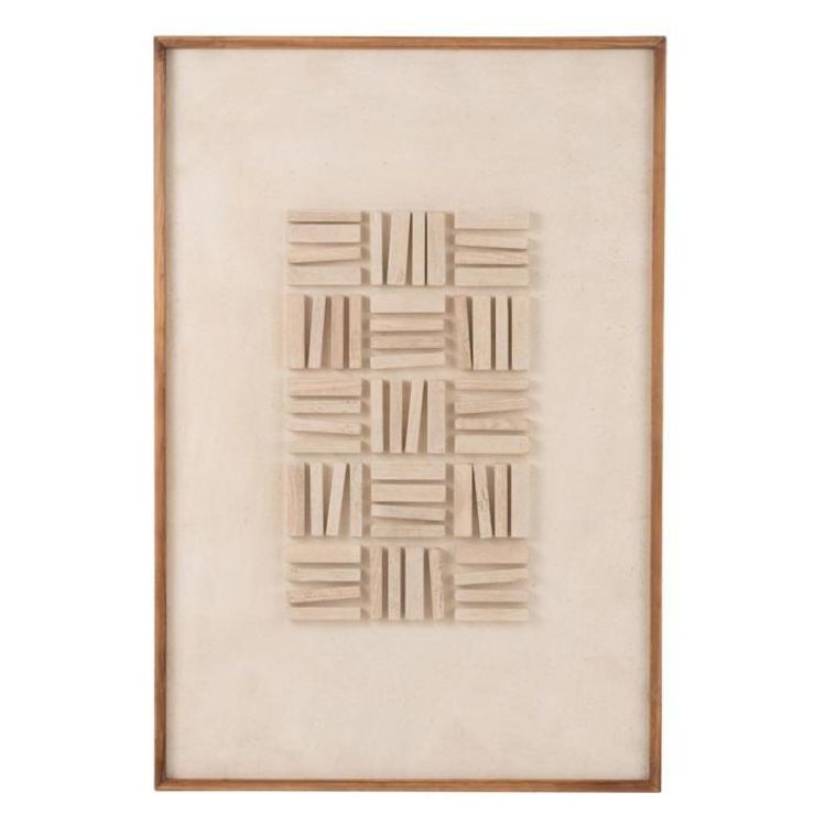 Informations Techniques : Dimensions : L. 82 x l. 4 x H. 122 cm Matières : 95% Bois (Pin Recyclé) & 5% Toile Spécificités : Déco & Tendance Toile murale encadrée Design morceaux de bois Poids : 5,9 kg Couleur : Naturel