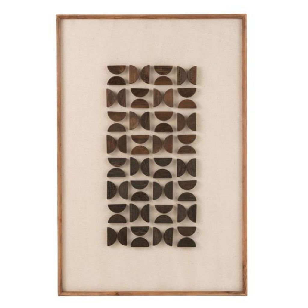 Informations Techniques : Dimensions : L. 82 x l. 4 x H. 122 cm Matières : 95% Bois (Pin Recyclé) & 5% Toile Spécificités : Déco & Tendance Toile murale encadrée Design morceaux de bois Poids : 5,9 kg Couleur : Marron