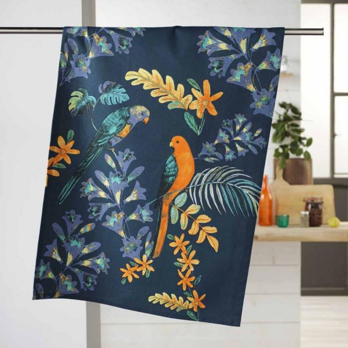 Informations Techniques : Dimensions : L. 70 x l. 50 cm Matière : 100% Coton Spécificités : Doux & Agréable Torchon de Cuisine Forme Rectangulaire Motif Imprimé Certification Oeko Tex Standard 100 Poids : 0,08 kg Couleur : Bleu