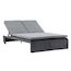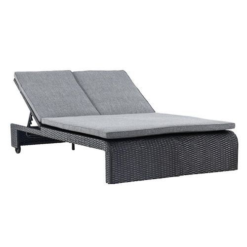 Informations Techniques : Dimensions : L. 196 x l. 119 x H. 32 cm Matières : Polypropylène, Aluminium & Polyester Spécificités : Pratique & Moderne Transat double avec roues Effet rotin Dossier ajustable Coussin inclus Résistant aux UV Revêtement en poudre Poids max supporté : 220 kg Poids : 28 kg C