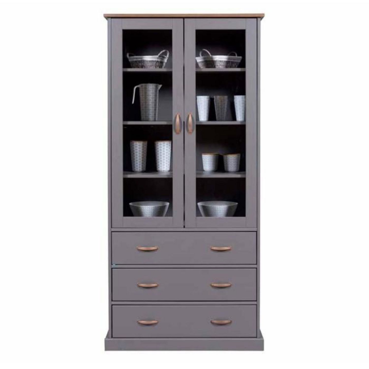 Vaisselier 2 Portes & 3 Tiroirs Zernan 190cm Gris